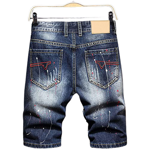 กางเกงยีนส์ขาสั้นผู้ชายแฟชั่นลายข้างสไตล์วินเทจขาดๆ ทรงสลิมฟิต ระบายอากาศได้ดี ติดกระดุม คุณภาพสูง