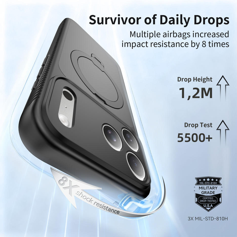 เคสโทรศัพท์มือถือแบบแม่เหล็ก ป้องกันเลนส์กล้องเต็มรูปแบบ กันกระแทก หมุนได้ 360 องศา พร้อมขาตั้ง สำหรับ iPhone 17 16 Pro Max