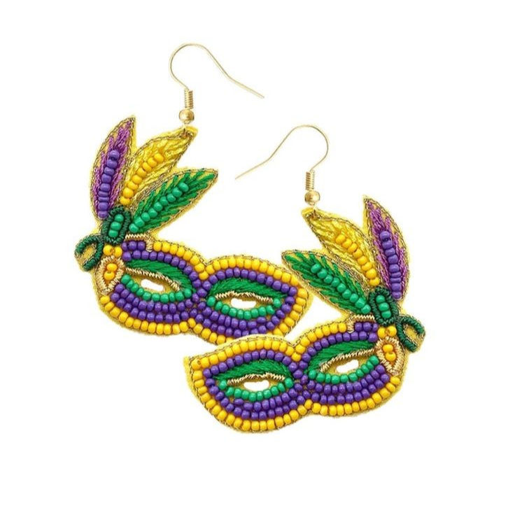 ต่างหูแฟชั่นลายดอกไม้มาร์ดิกราส์ ประดับลูกปัดและดอกเฟลอร์ลิส ชุดจากอินเดีย ทำด้วยมือ สำหรับทุกเพศ