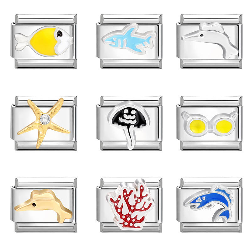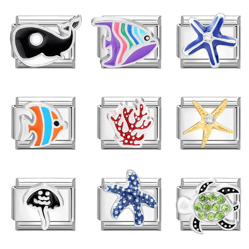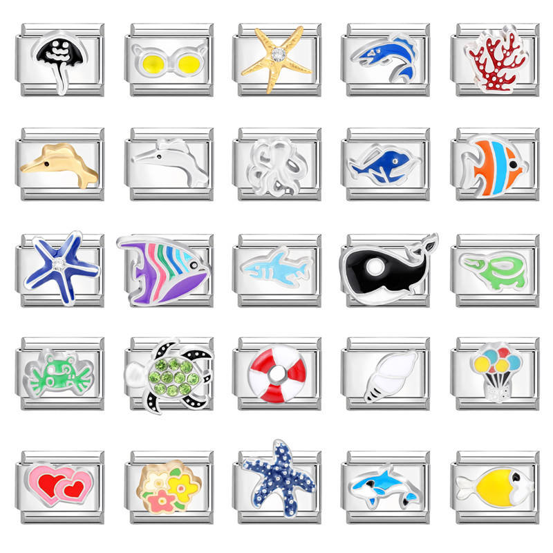 ชุดเครื่องประดับแฟชั่นลายสัตว์และพืชทะเลสไตล์อิตาลี ขายดี สร้อยข้อมือสแตนเลสสตีล DIY พร้อมจี้สไตล์อิตาลี