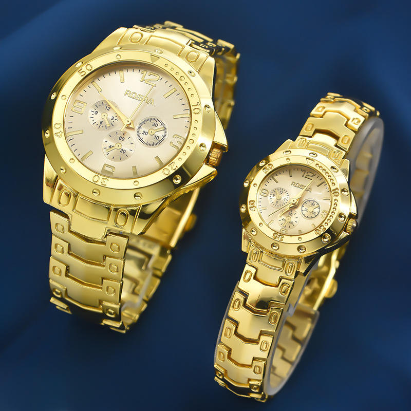 นาฬิกาข้อมือควอตซ์แฟชั่นสำหรับผู้ชาย สายเหล็ก นาฬิกาคู่หรูหราสไตล์ลำลองสำหรับผู้ชายและผู้หญิง หน้าปัดสามวง รุ่น CW02