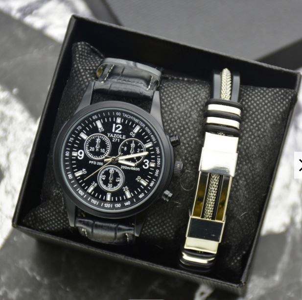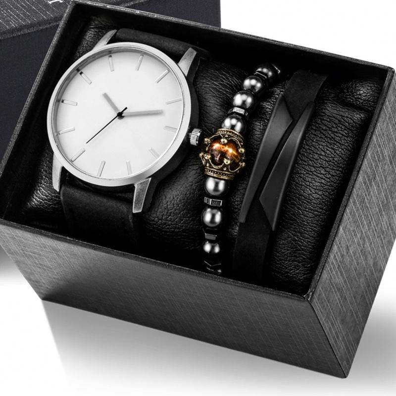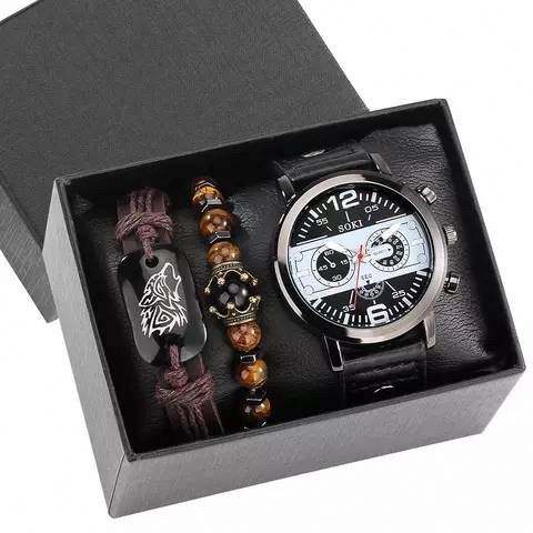 นาฬิกาแฟชั่นผู้ชายพร้อมกล่องควอตซ์สร้อยข้อมือพร้อมกล่องนาฬิกาธุรกิจกีฬานาฬิกาปฏิทินสำหรับผู้ชายชุดเครื่องประดับ