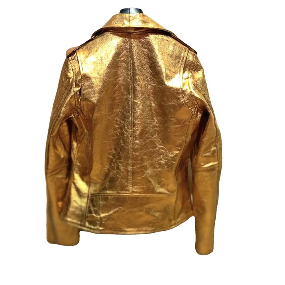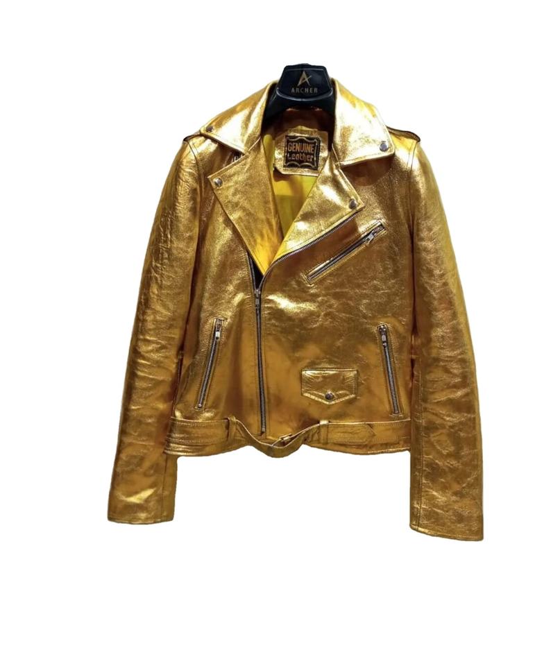 Brando แจ็กเก็ตหนังแท้สำหรับผู้ชาย, แจ็คเก็ตหนังแท้สีทองเมทัลลิกหุ้มเข็มขัดแนววินเทจสีทองสีทองสีทองเมทัลลิก