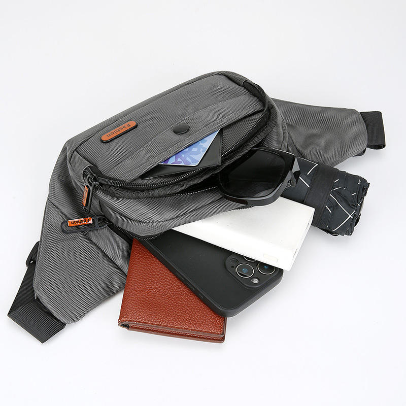 กระเป๋าคาดหน้าอกแฟชั่นสำหรับผู้ชาย สีเขียวทหาร สายปรับได้ กันน้ำ สำหรับกิจกรรมกลางแจ้ง ปั่นจักรยาน สะพายข้าง สะพายเอว สีพื้น