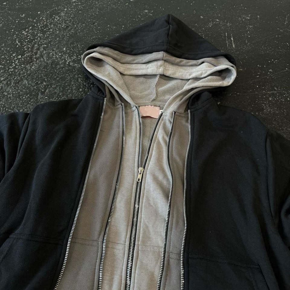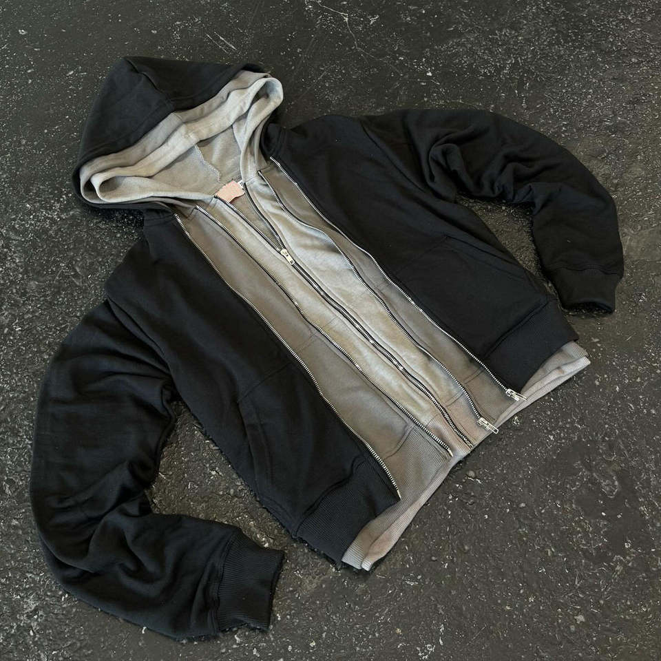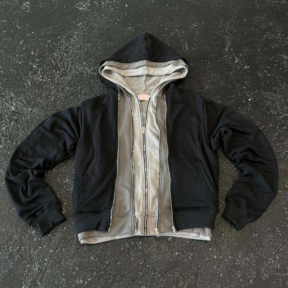 เสื้อสเวตเชิ้ตผู้ชายแฟชั่นแบบมีฮู้ดสองชั้น ซิปหน้า สำหรับฤดูหนาว | เสื้อฮู้ดดี้สตรีทแวร์ผ้าฟลีซหนานุ่มกันลมพร้อมโลโก้แบบกำหนดเอง