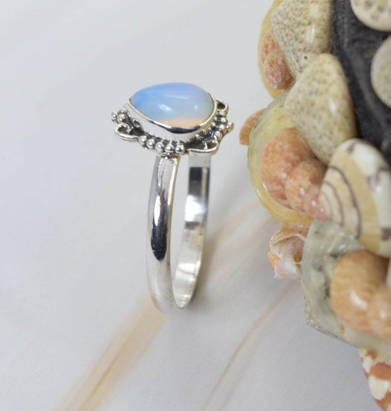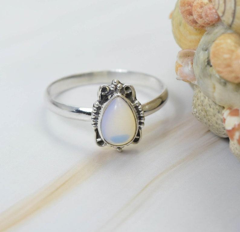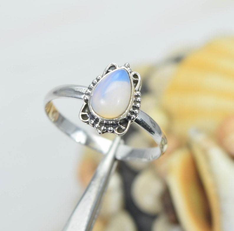 แหวนพลอยโอปอลสีเงิน925แฟชั่นทำด้วยมือแหวนหรูหราเครื่องประดับทำด้วยมือจี้รูปลูกแพร์ของขวัญสำหรับคริสต์มาส