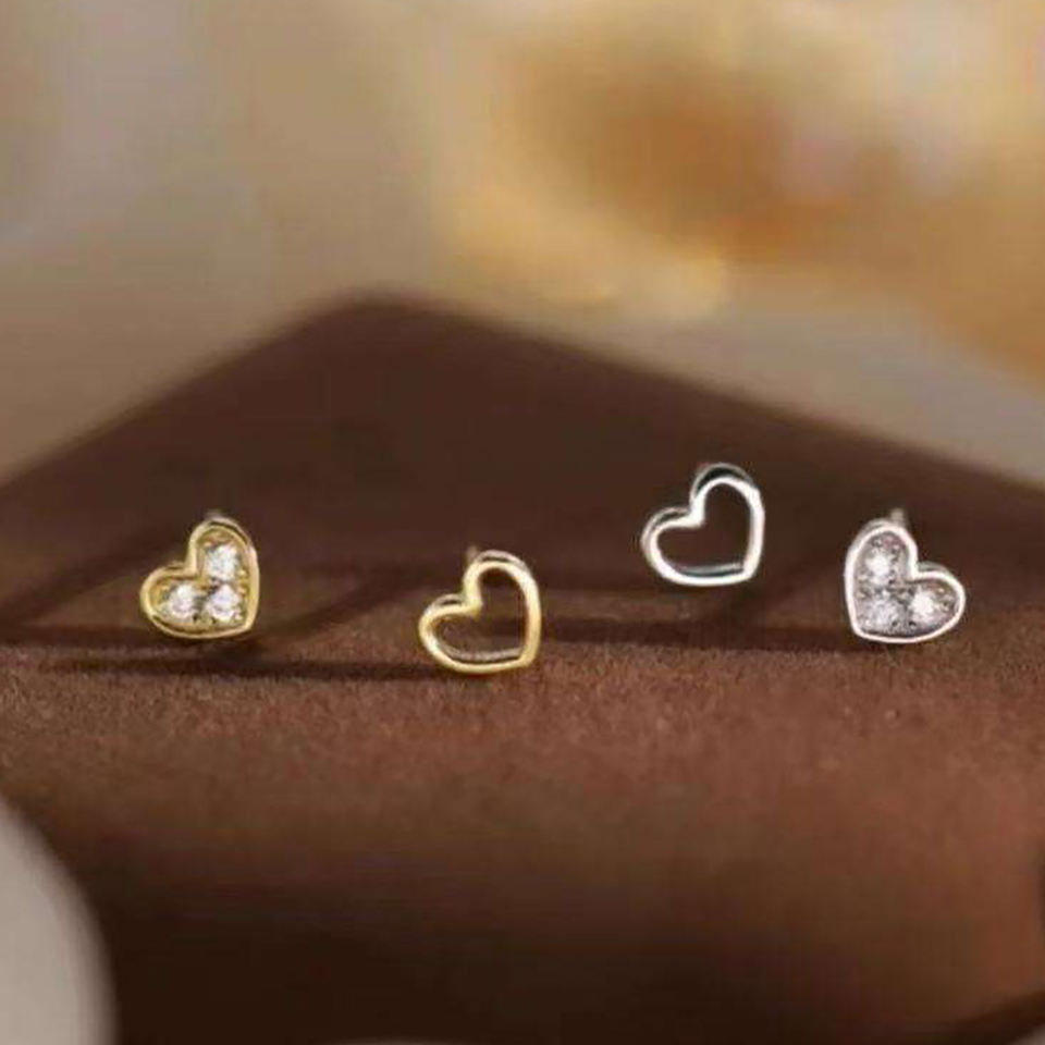 ชื่อผลิตภัณฑ์:ต่างหูเม็ดกลมรูปหัวใจกลวงสีทองประดับเพชร14K