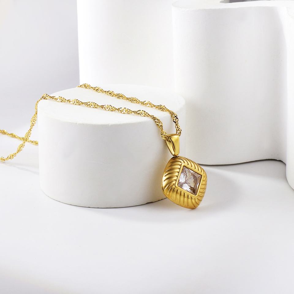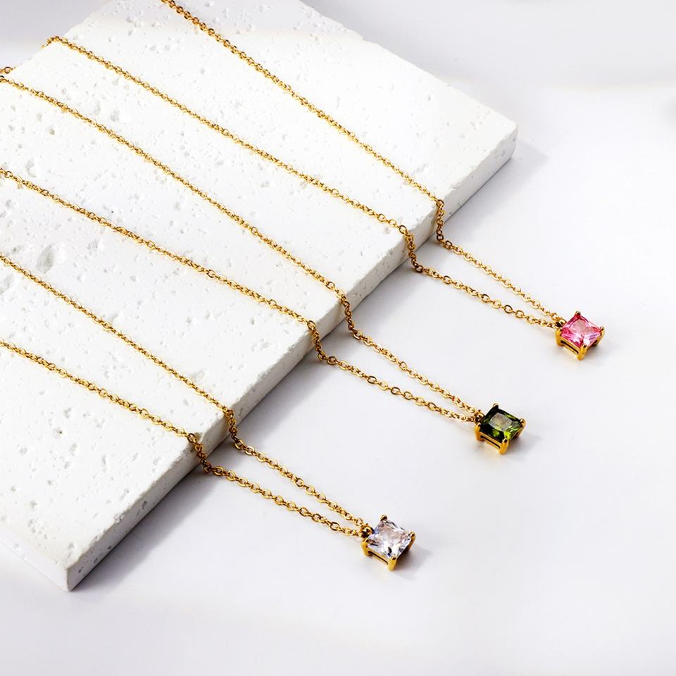 สร้อยคอแฟชั่นมินิมอลทรงหยดน้ำประดับเพชรซิคอน ชุบทอง 18K จี้สแตนเลสสตีล เครื่องประดับกันน้ำสำหรับผู้หญิง