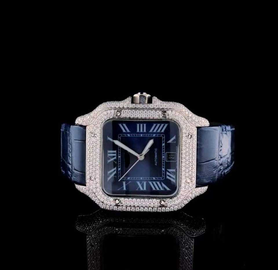 นาฬิกาควอตซ์แฟชั่นสปอร์ตสแตนเลสประดับเพชรโมอิสซาไนต์สุดหรูสำหรับทุกเพศทุกวัย พร้อมเพชรเต็มหน้าปัด ราคาสุดคุ้ม