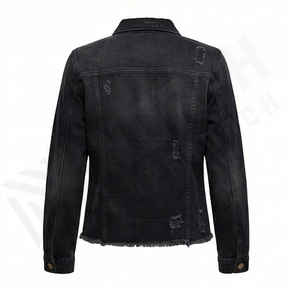 แจ็คเก็ตยีนส์ผู้หญิงทรงโอเวอร์ไซส์ แขนยาว ขาดเซอร์ๆ สไตล์เดนิม ทรงเข้ารูป ผ้าฝ้าย แฟชั่น รับสั่งทำสีได้