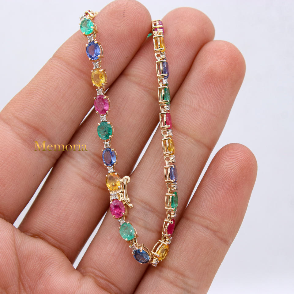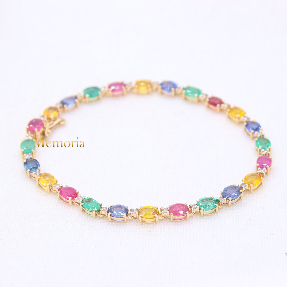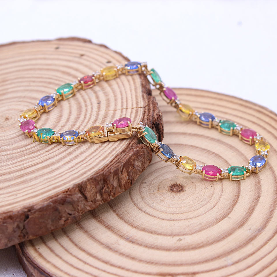 ชื่อรายการ:สร้อยข้อมือทองคำขาวมรกตทับทิมไพลินและเพชร14K