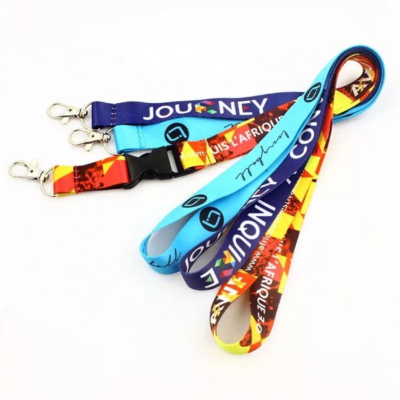 สายคล้องคอแฟชั่นแบบซับลิเมชันเชือกเส้นเล็กโพลีเอสเตอร์ออกแบบได้ตามต้องการมีโลโก้ได้ตามต้องการ