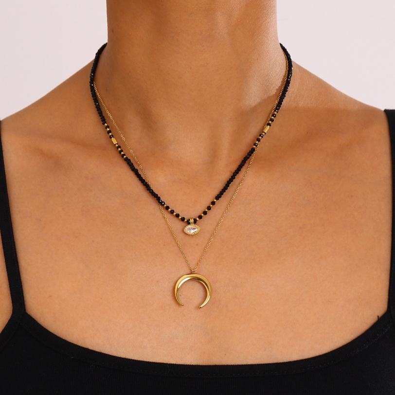 สร้อยคอแฟชั่นสำหรับผู้หญิง ชุบทอง 18K สแตนเลส สร้อยคอรูปพระจันทร์สำหรับผู้หญิง