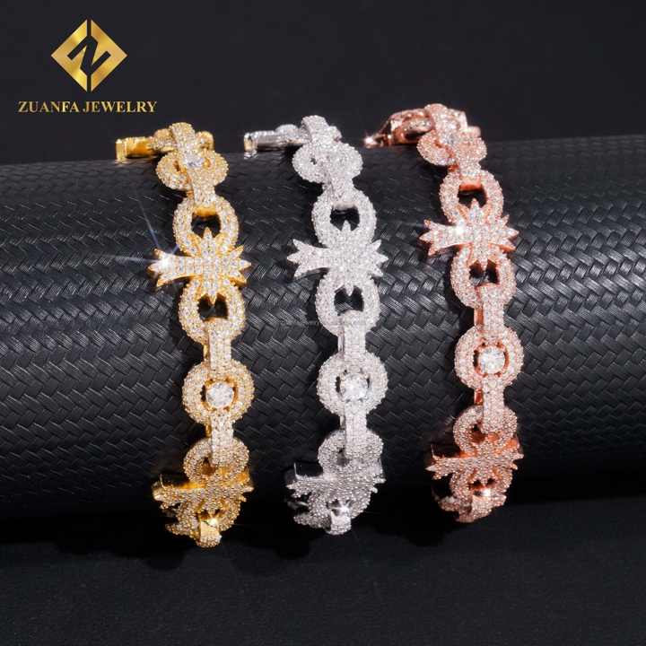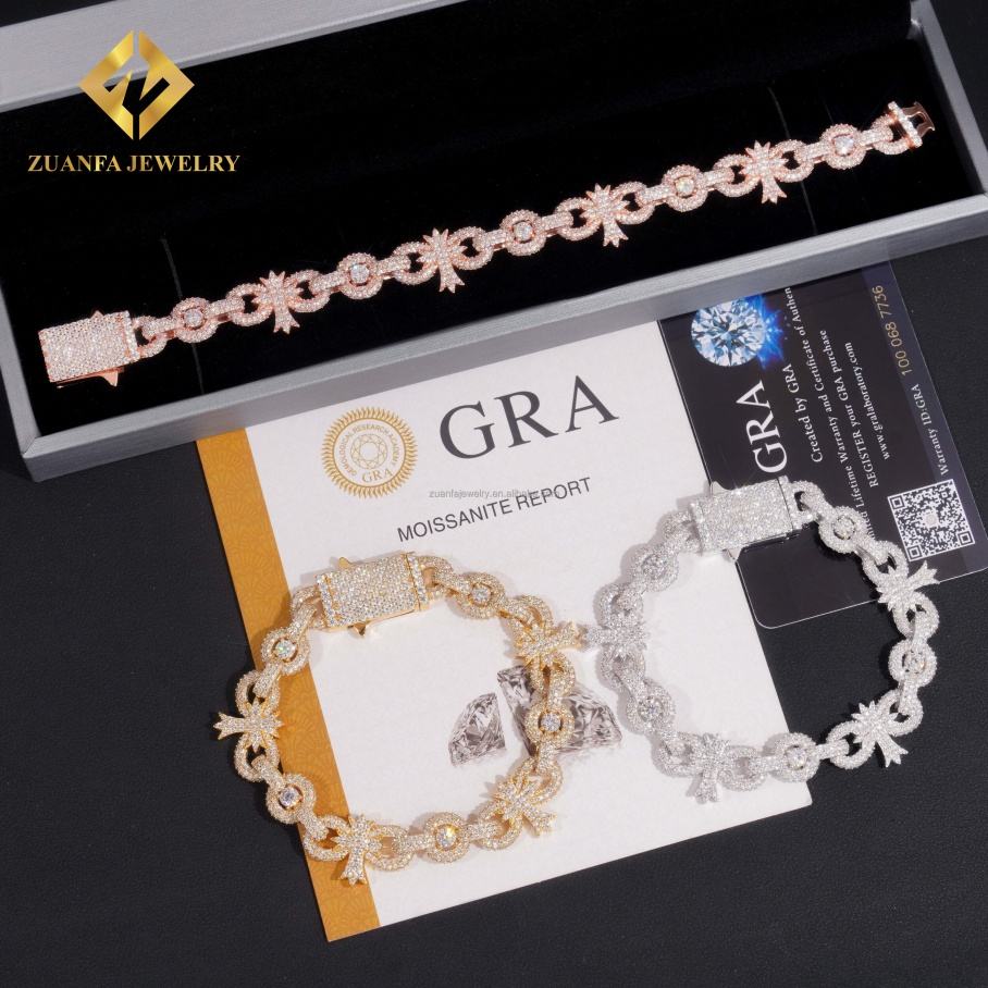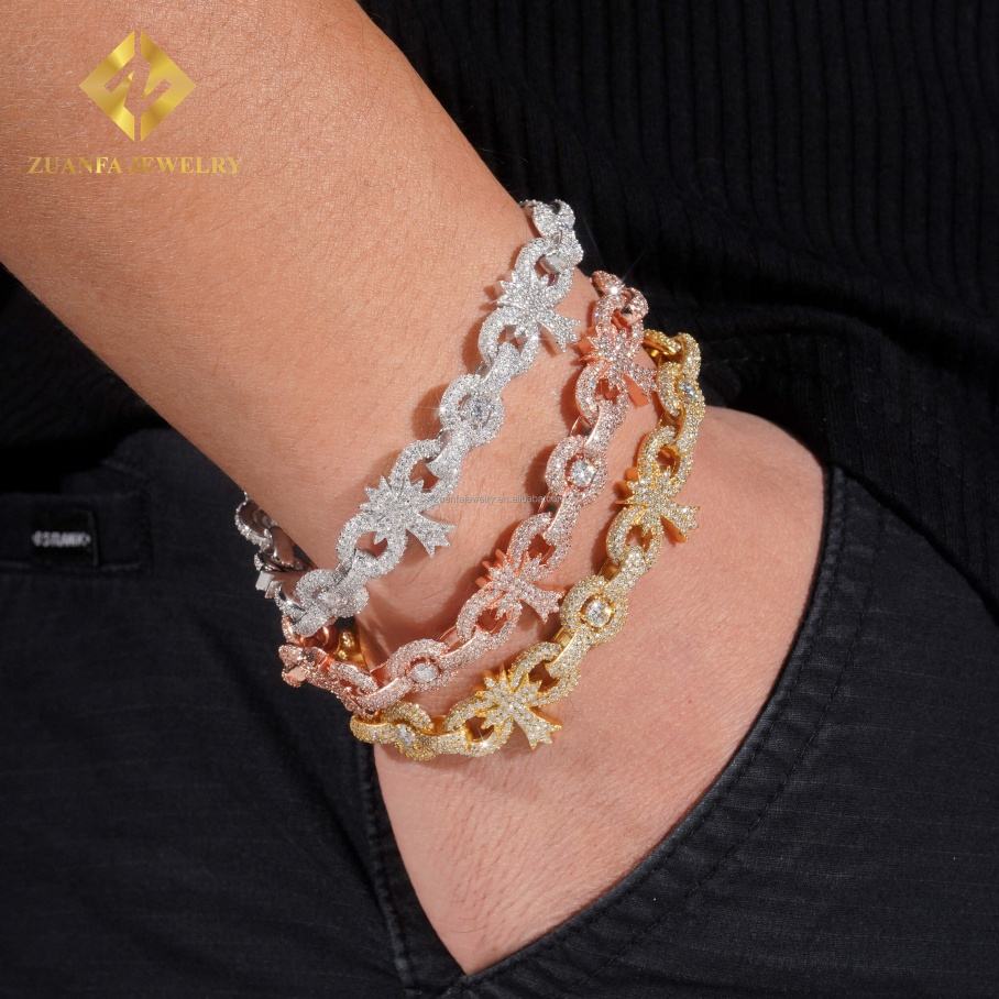 Fashion New Arrivals Hip Hop Luxury 925 Sterling Silver Iced Out Jewelry FL Moissanite Diamond Cross Cuban Link Bracelet Men
