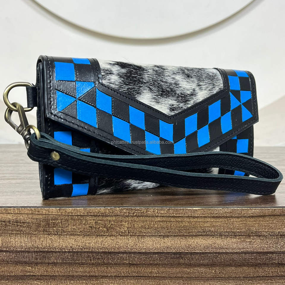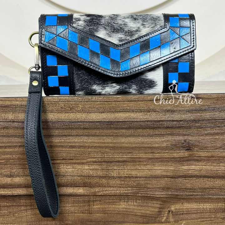 กระเป๋าสตางค์หนังแบบคล้องมือลายตารางหมากรุก
