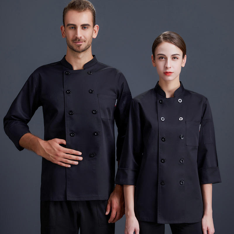 เสื้อแจ็กเก็ตบริกรแขนยาวแฟชั่นใหม่เสื้อสำหรับทำอาหารบาร์บีคิวเบเกอรี่ร้านอาหารบาร์ชุดเชฟเสื้อโค้ท