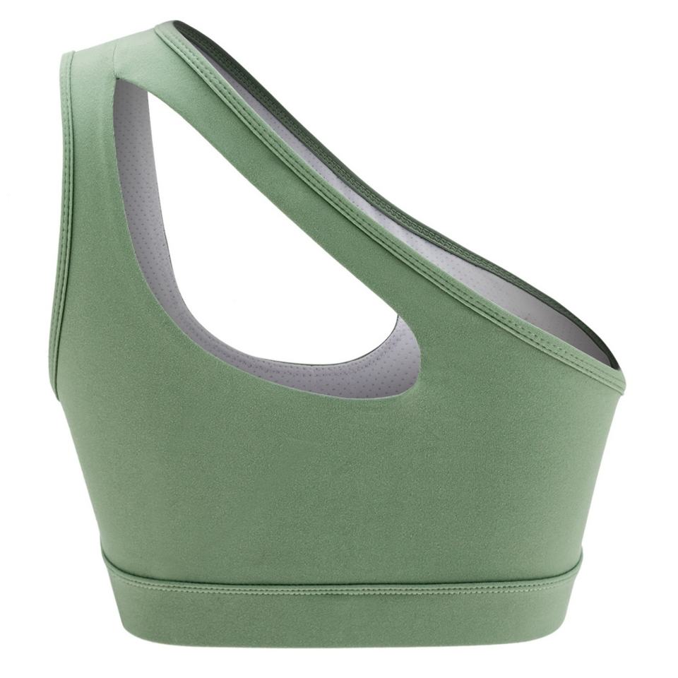 แฟชั่นหนึ่งไหล่พืชกีฬา Bra ผ้าพันแผลออกแบบยิม Bra แห้งเร็วการบีบอัด Cropped โยคะเสื้อกล้ามพร้อมแผ่น