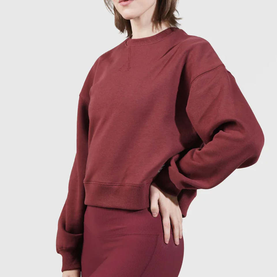 เสื้อฮู้ดดี้โอเวอร์ไซส์แฟชั่นสำหรับผู้หญิง เสื้อสเวตเชิ้ตลำลองสไตล์ฮิปฮอป ทรงโอเวอร์ไซส์ ไหล่ตก ผ้าฝ้าย สีเบอร์กันดี
