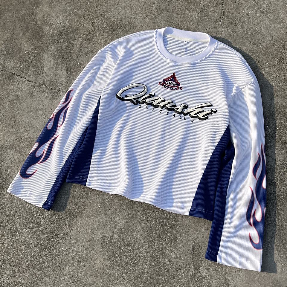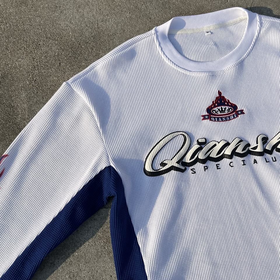 เสื้อยืดแฟชั่นทรงหลวม แขนยาว พิมพ์ลายวาฟเฟิล พิมพ์ลายนูน ดีไซน์เนอร์สั่งทำพิเศษ สำหรับผู้ชาย