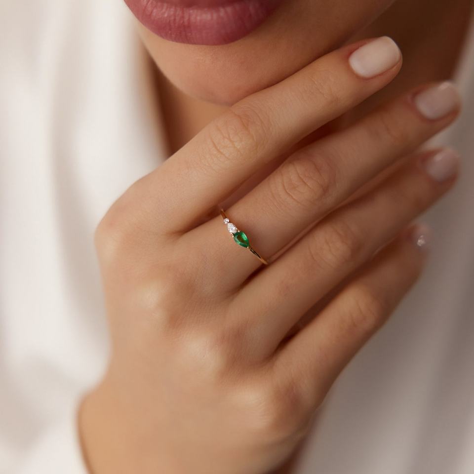 แหวนเงินแท้ 925 ประดับมรกตทรงลูกแพร์ ดีไซน์เรียบหรู แหวนเงิน S925 แหวนหมั้นมรกตทรงลูกแพร์