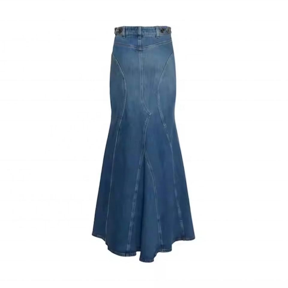 กระโปรงยีนส์ถักทรงดินสอสไตล์วินเทจ คุณภาพสูง เอวสูง สำหรับผู้หญิง