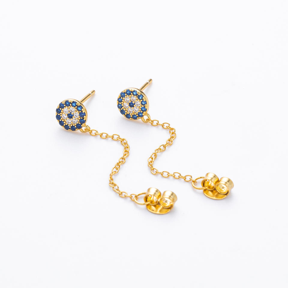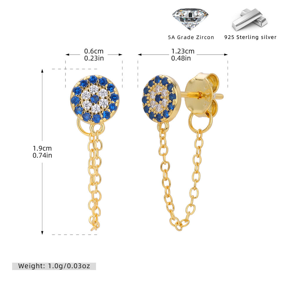 ต่างหูแบบยาวประดับเพชรลายตาปีศาจ ชุบทองคำแท้ 925 ป้องกันอาการแพ้ ดีไซน์ทันสมัย เหมาะสำหรับเป็นของขวัญในงานปาร์ตี้