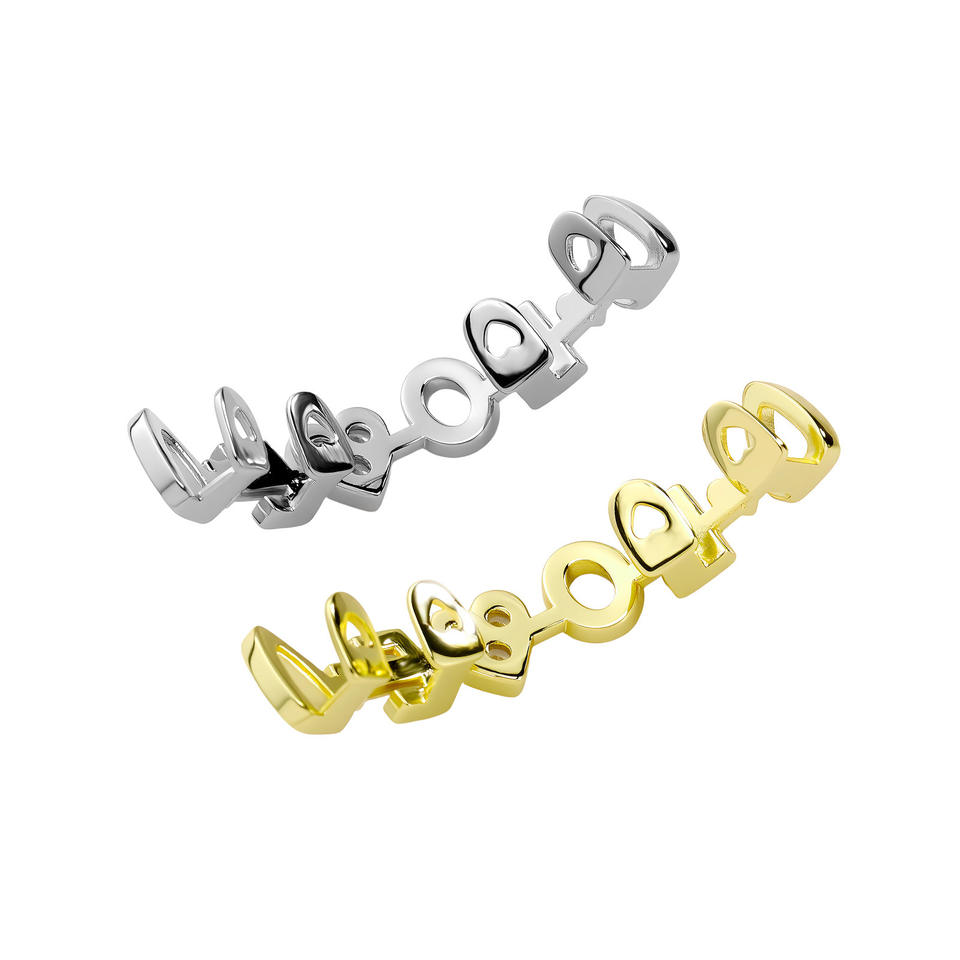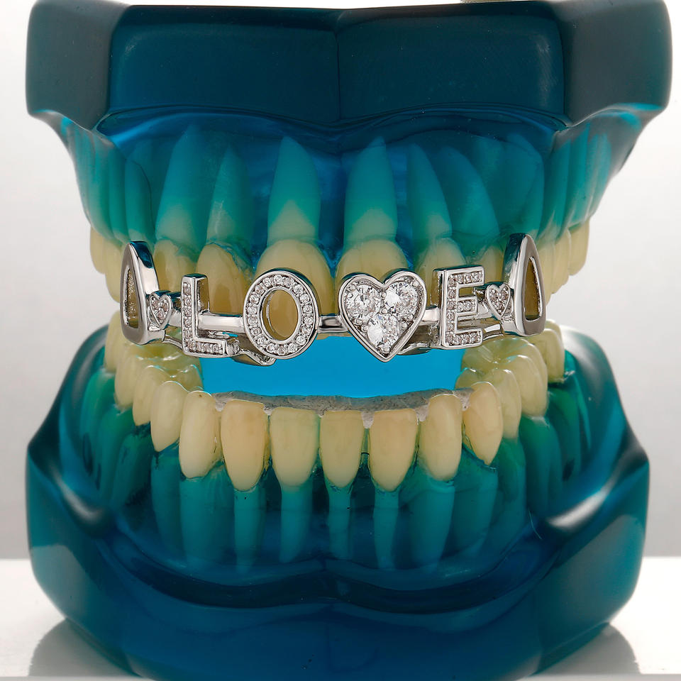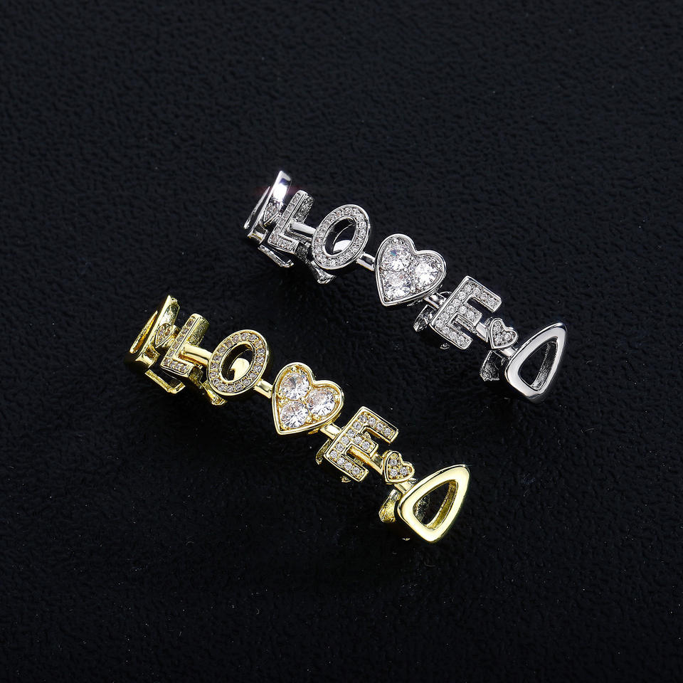 เครื่องประดับฮิปฮอปแฟชั่นส่วนบุคคล ประดับเพชร CZ ระยิบระยับ แบบกริลล์ฟันทองเหลือง รูปตัวอักษร LOVE รูปหัวใจ สำหรับงานปาร์ตี้