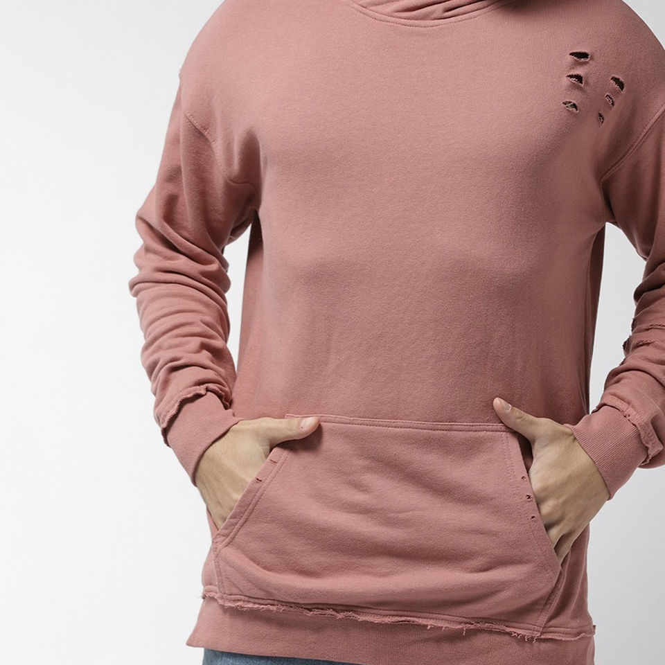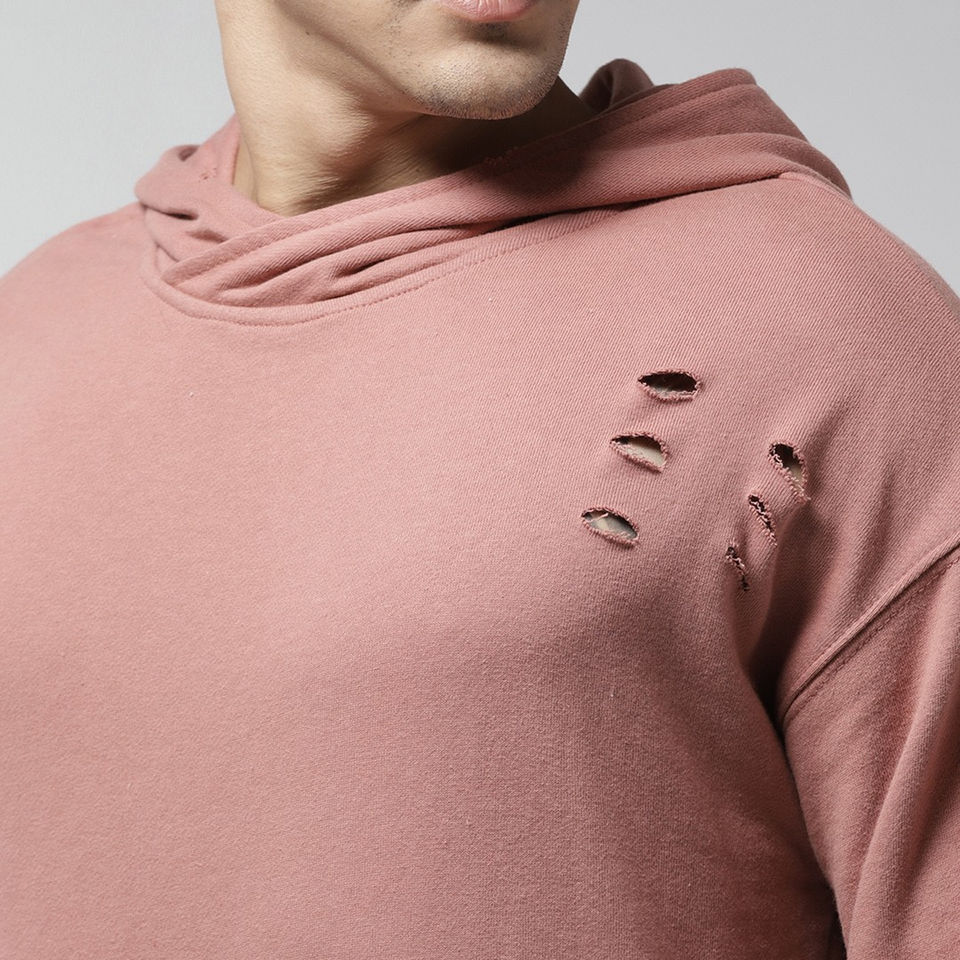 เสื้อฮู้ดดี้แฟชั่นเรียบง่ายแบบขาดๆ สไตล์ดิสเทรส ผลิตตามสั่ง เสื้อฮู้ดดี้ผ้าคอตตอนผสม เสื้อฮู้ดดี้ผ้าเฟรนช์เทอร์รี่คอตตอนแบบขาดๆ สำหรับผู้ชาย