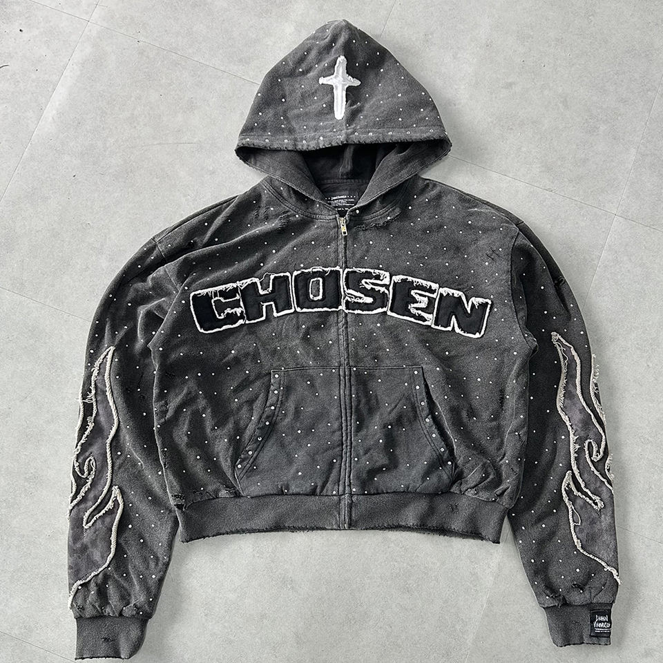 เสื้อมีฮู้ดแฟชั่นสำหรับผู้ชายผ้าคอตตอนผสมทำจากผ้าฝ้ายผ้าเทอร์รี่ฝรั่งเศสแบบขาด
