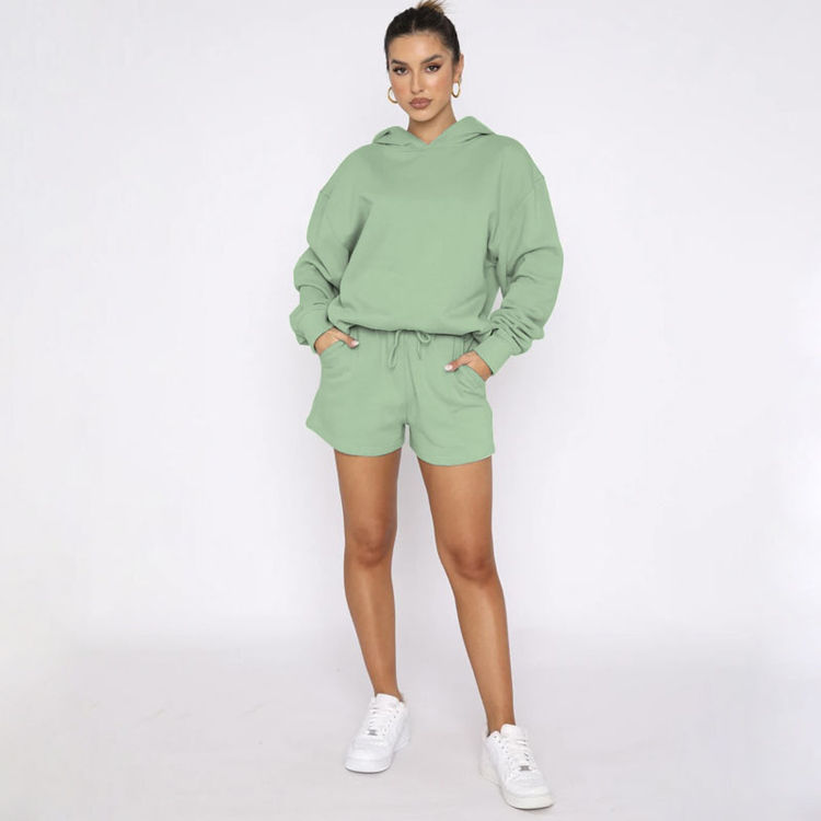 ชื่อสินค้า:ชุดเสื้อฮู้ดและกางเกงขาสั้นสำหรับผู้หญิง