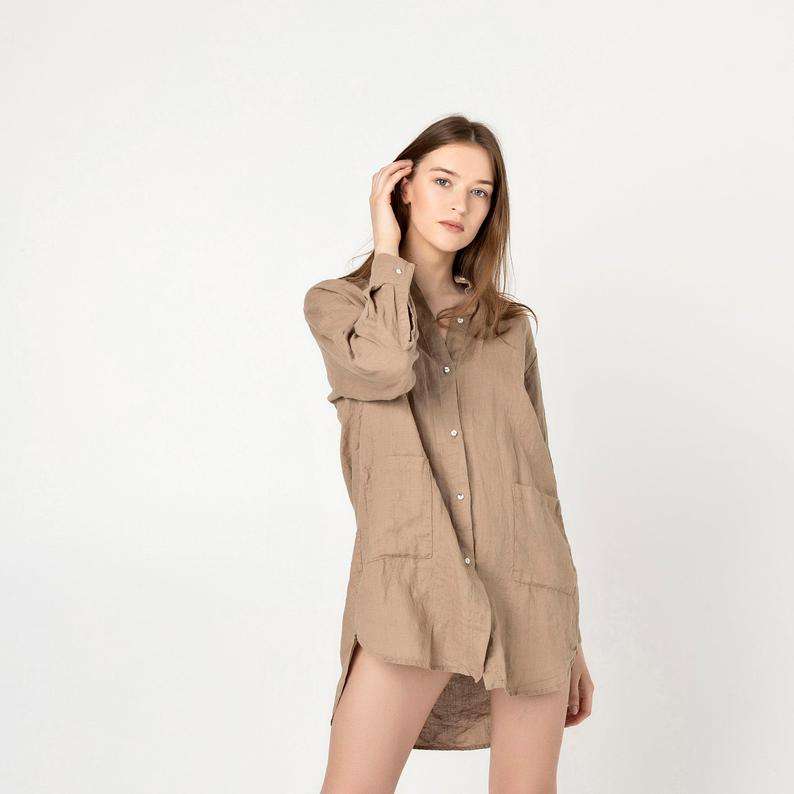 Fashion Premium Quality Natural Linen Oversize Shirt for Woman Private Label Ladies Breathable Top Sexy Feminine Tuni
