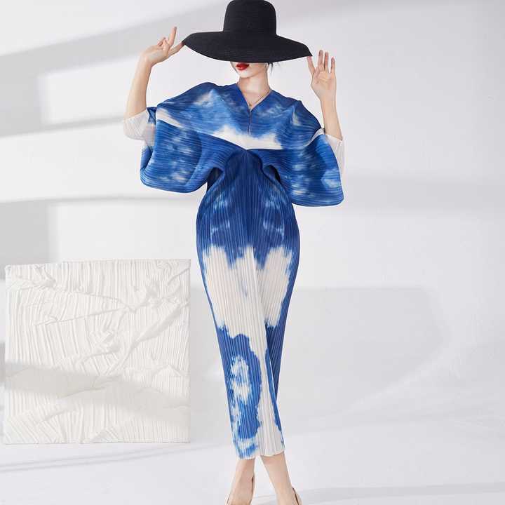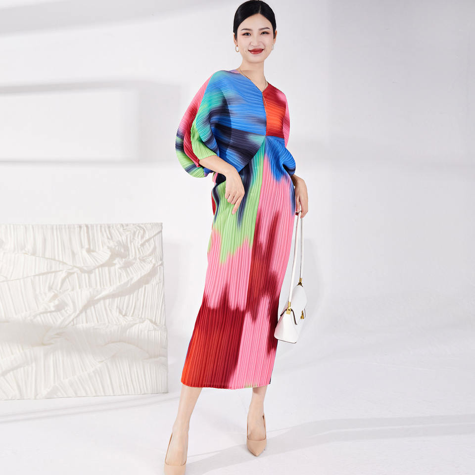 ชุดเดรสแฟชั่นพิมพ์ลาย แขนทรงปีกค้างคาว ทรงหลวม สไตล์ลำลอง ดีไซน์หรูหรา ไซส์ใหญ่ คุณภาพสูง ผ้าพลีท 100% โพลีเอสเตอร์