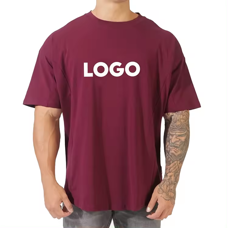 เสื้อยืดแฟชั่นพิมพ์ลายไซส์ใหญ่สำหรับผู้ชายทรงหลวมเปิดไหล่สไตล์100% ผ้าฝ้ายออกแบบโลโก้ได้ตามต้องการ