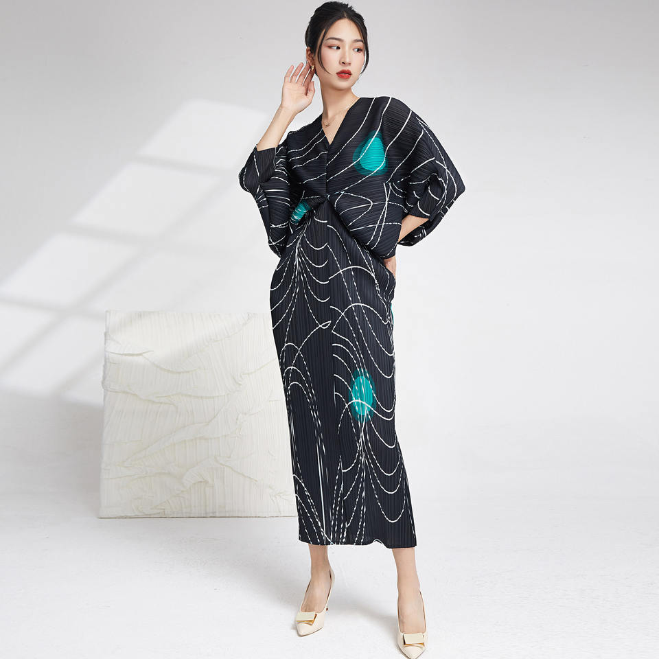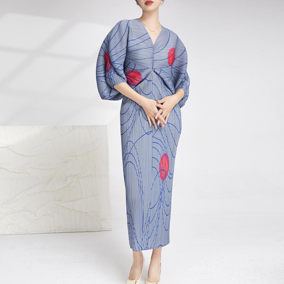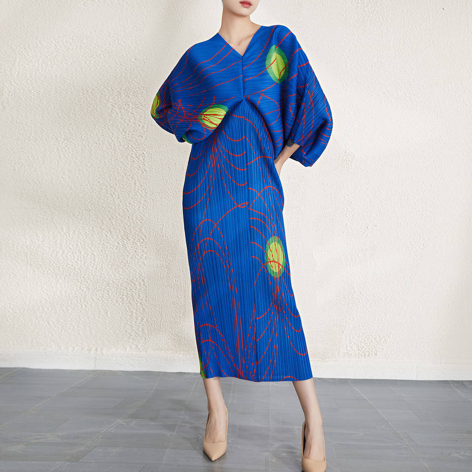 เดรสลำลองผู้หญิงไซส์ใหญ่ ผ้าทอพิมพ์ลายจีบระบาย ความยาวปานกลาง เอวธรรมชาติ ทรงหลวม ซักได้ ไม่ยับ พร้อมขายส่ง