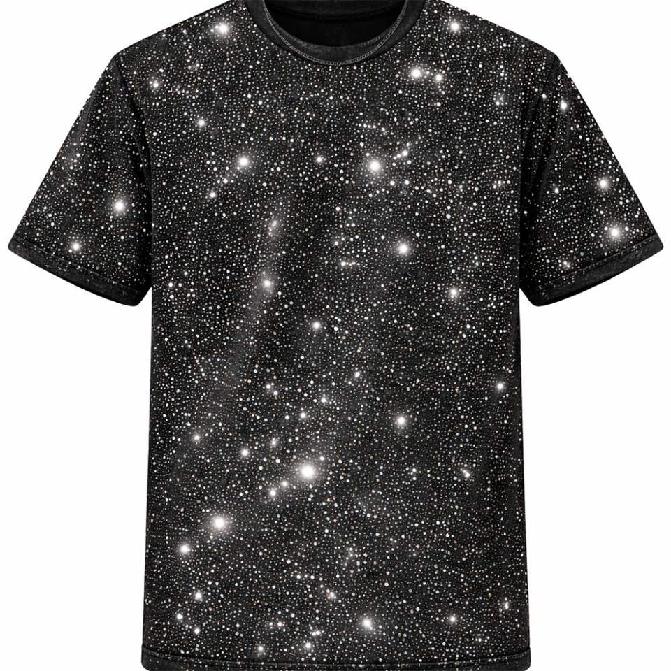 เสื้อยืดผู้ชายประดับพลอยเทียม