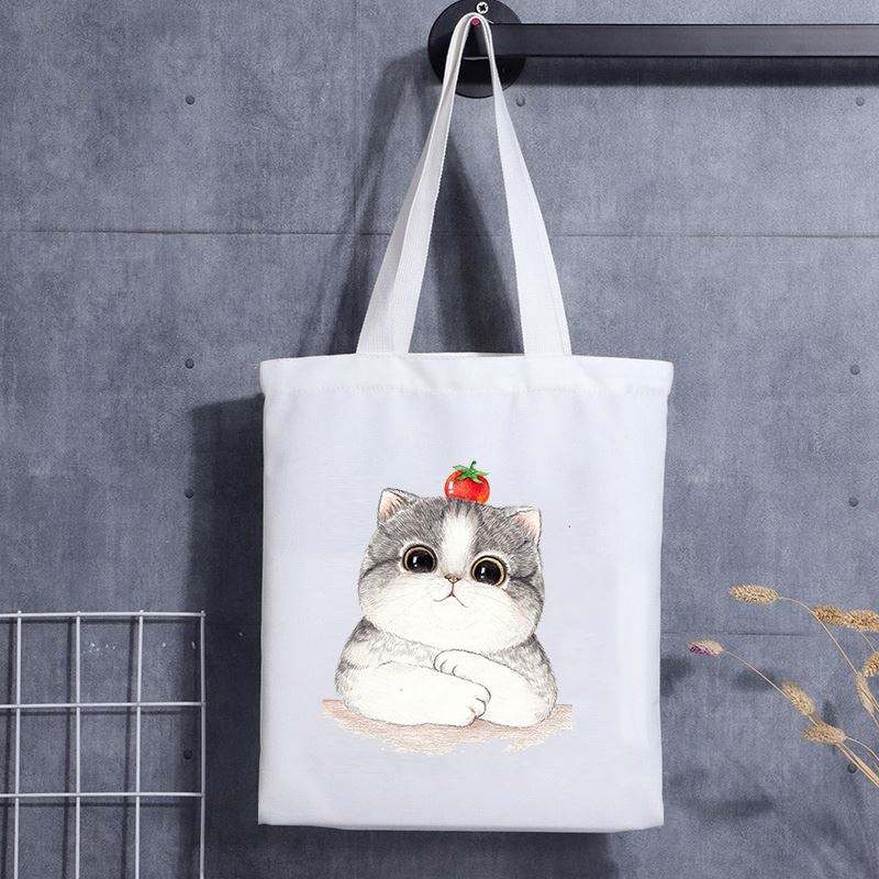 กระเป๋าผ้าแคนวาสพับได้ พิมพ์ลายแฟชั่น ราคาถูก เป็นมิตรกับสิ่งแวดล้อม รีไซเคิลได้ ใช้ซ้ำได้ ขนาดกลาง สำหรับใส่ของช้อปปิ้ง