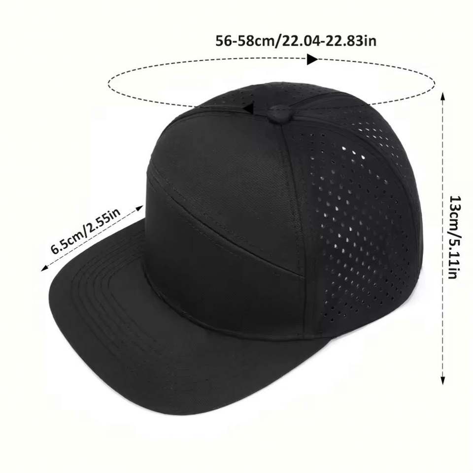 หมวกแก๊ปแฟชั่นแห้งเร็ว กันน้ำ เจาะรูด้วยเลเซอร์ ปีกแบน ปรับขนาดได้ สกรีนโลโก้ได้ 6 แผง ผ้าโพลีเอสเตอร์ตาข่าย 100% สำหรับทุกเพศ