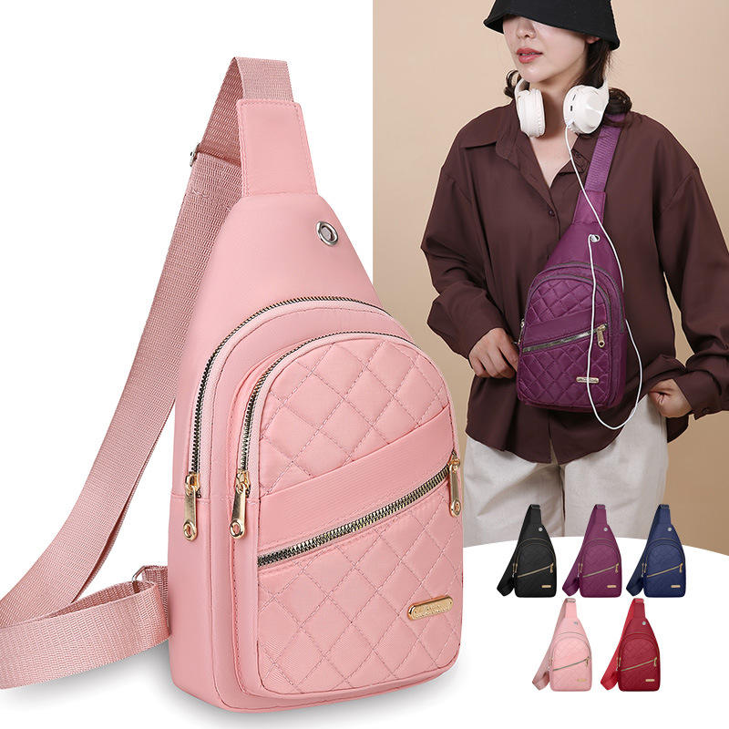 กระเป๋าคาดหน้าอกแบบควิลท์แฟชั่นสำหรับผู้หญิง สีเบอร์กันดี กันน้ำ มีหลายช่องซิปปิด ใช้ได้ทุกวัน เหมาะสำหรับการเดินทางแบบสะพายข้าง
