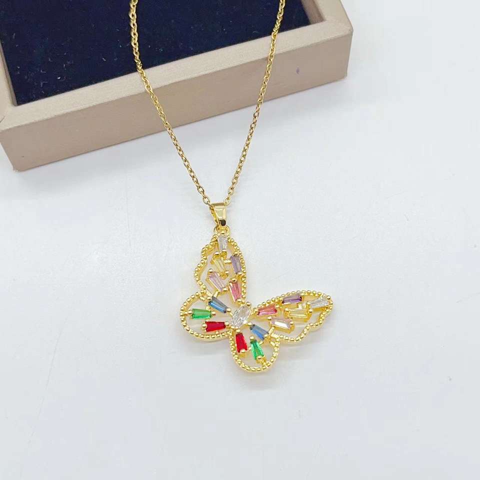 สร้อยคอแฟชั่นจี้ผีเสื้อพลอยเทียมสีทองทรงลูกบาศก์เซอร์โคเนียสำหรับงานเลี้ยงวันเกิดของขวัญผู้หญิงขายส่ง