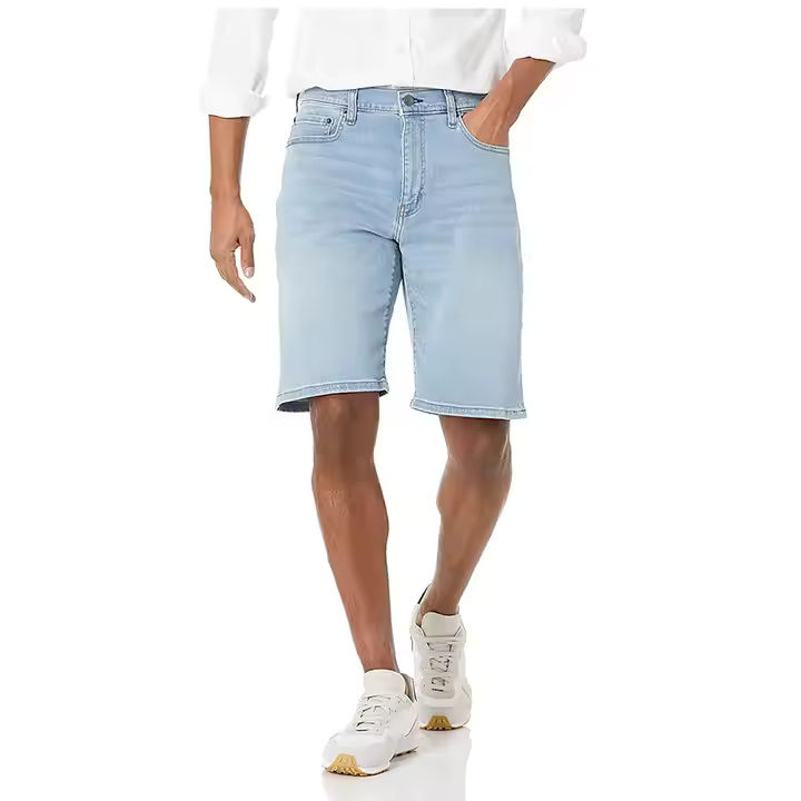 กางเกงยีนส์ขาสั้นแฟชั่นทรงตรงเข้ารูปปกติกางเกงยีนส์ซักได้สำหรับผู้ชายกางเกงขาสั้นผ้ายีนส์เอวกลางระบายอากาศลำลอง
