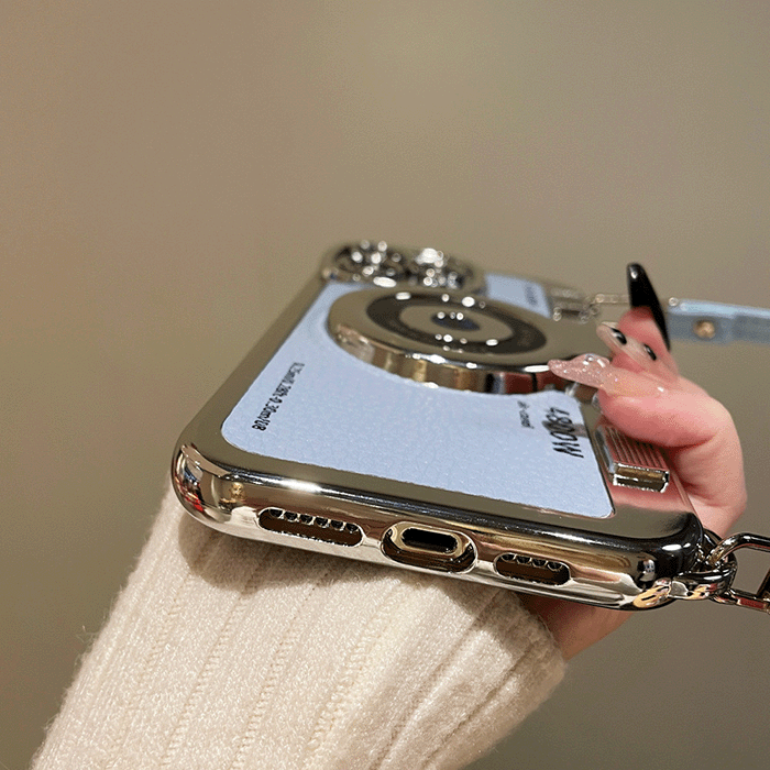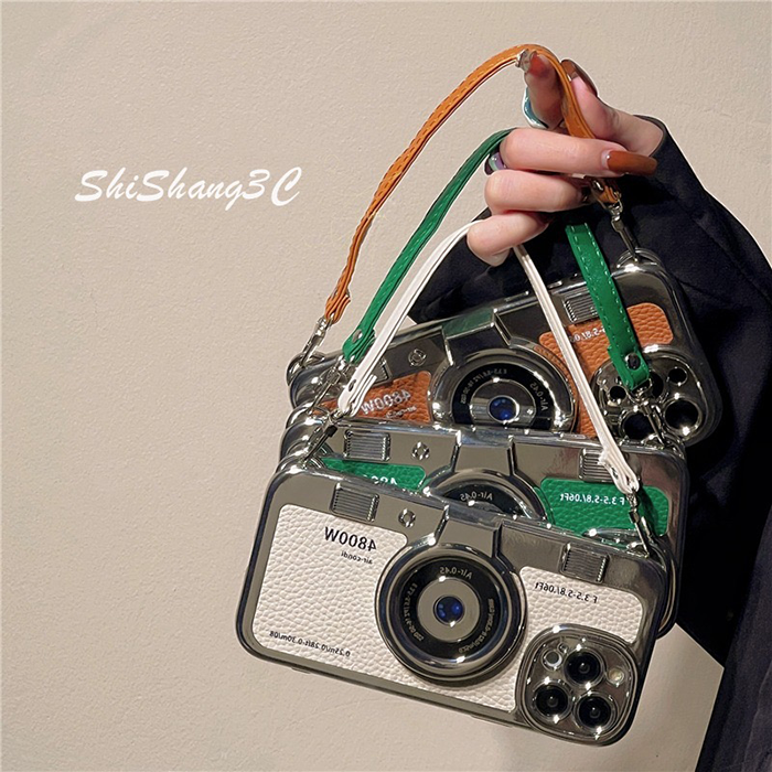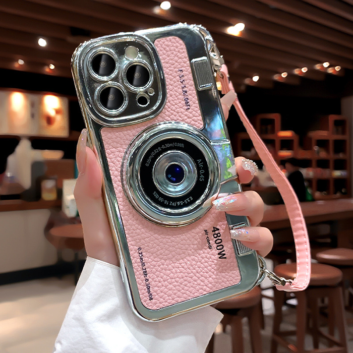 แฟชั่นย้อนยุคโซ่กล้องไฟฟ้าป้องกันรอยขีดข่วนเคสโทรศัพท์สี่เหลี่ยมสําหรับ iPhone 15 Pro Max เคส