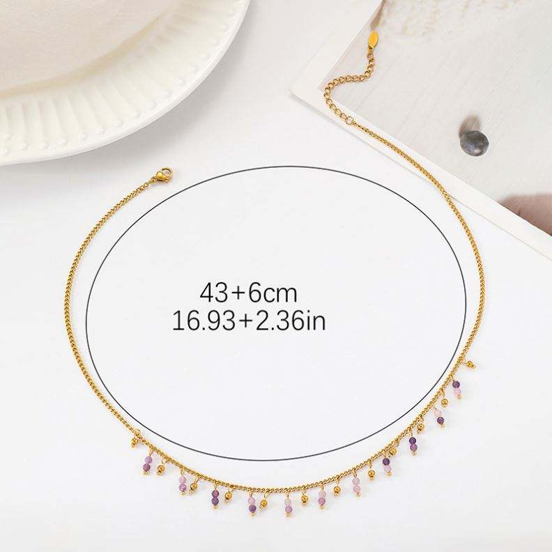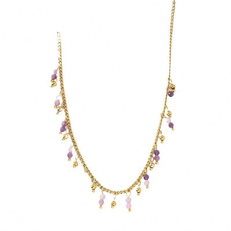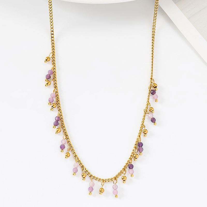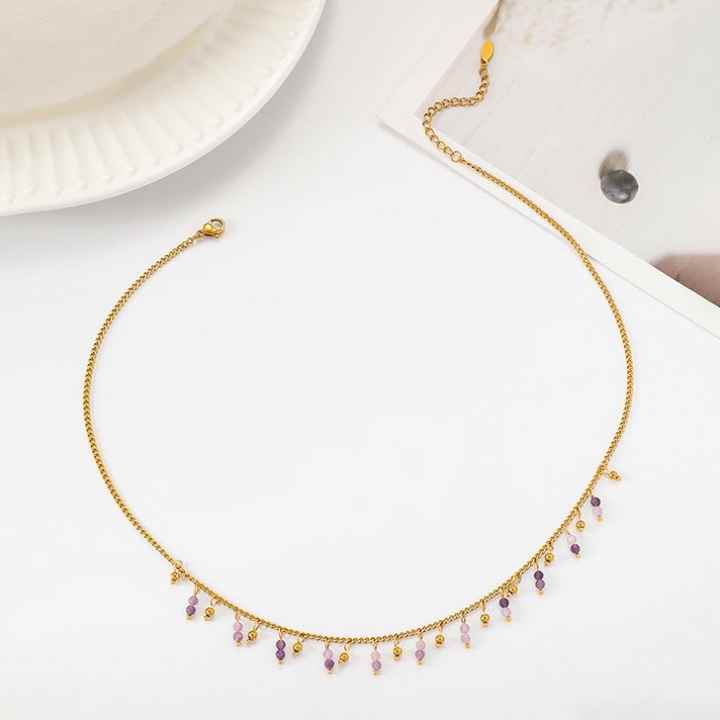 แฟชั่นย้อนยุคสแตนเลสสร้อยคอหินธรรมชาติแสงฝรั่งเศสหรูหราสีม่วงหินลูกปัดเครื่องประดับจี้คุณภาพสูง
