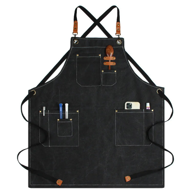 ผ้ากันเปื้อนผ้าใบแขนกุดกันน้ำแฟชั่นใช้ซ้ำได้สำหรับร้านดอกไม้เสื้อผ้าทำงานโลโก้และสีตามสั่ง