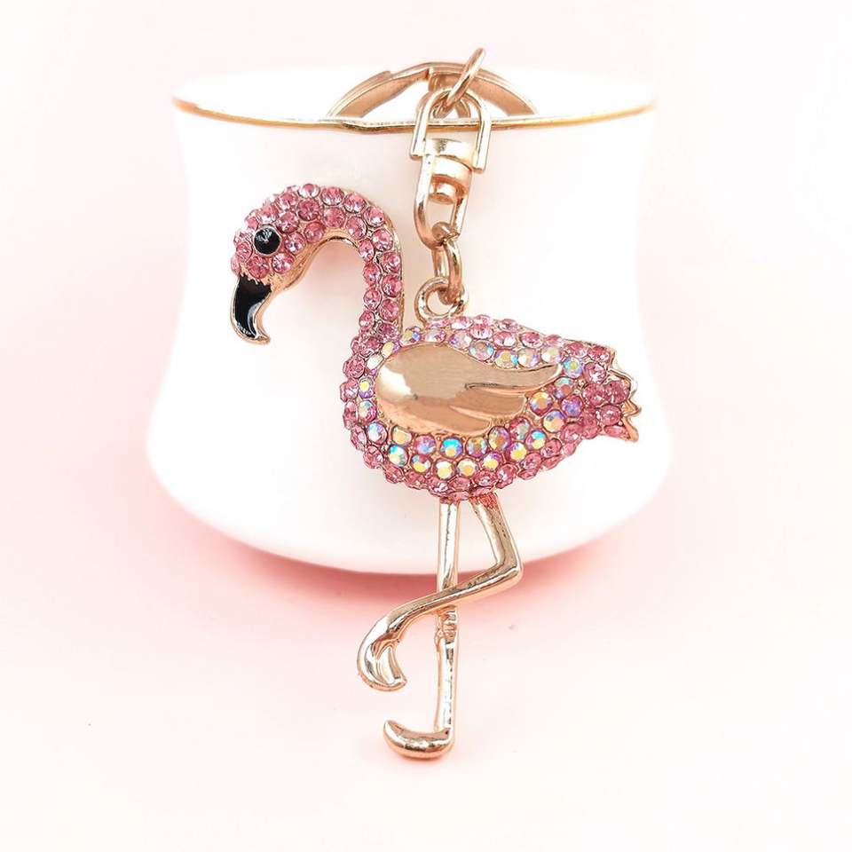 พวงกุญแจนกฟลามิงโก้แฟชั่นประดับพลอยเทียมรูปนกเป็นประกายพวงกุญแจรูปสัตว์นกฟลามิงโกโลหะ