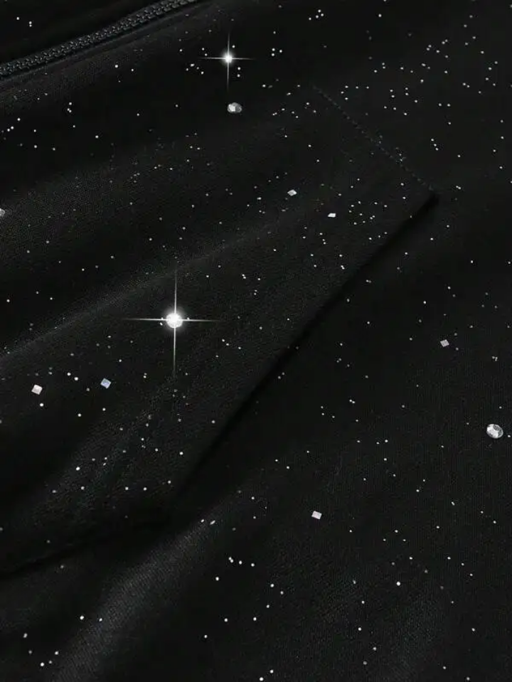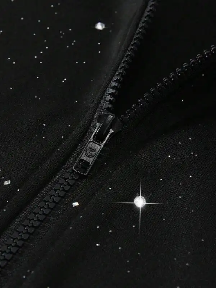เสื้อมีฮู้ดแฟชั่นพลอยเทียมสไตล์สตรีทแวร์ทันสมัยมีฮู้ดประดับคริสตัลวิบวับสำหรับเสื้อฮู้ดเพชรเทียม