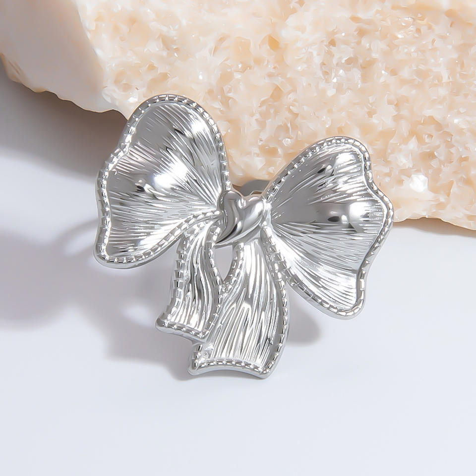 แหวนแฟชั่นรูปโบว์รูปดาวสแตนเลสสตีลเครื่องประดับสตรีของขวัญสีทองสีเงินฝังเรียบ JZ21319G