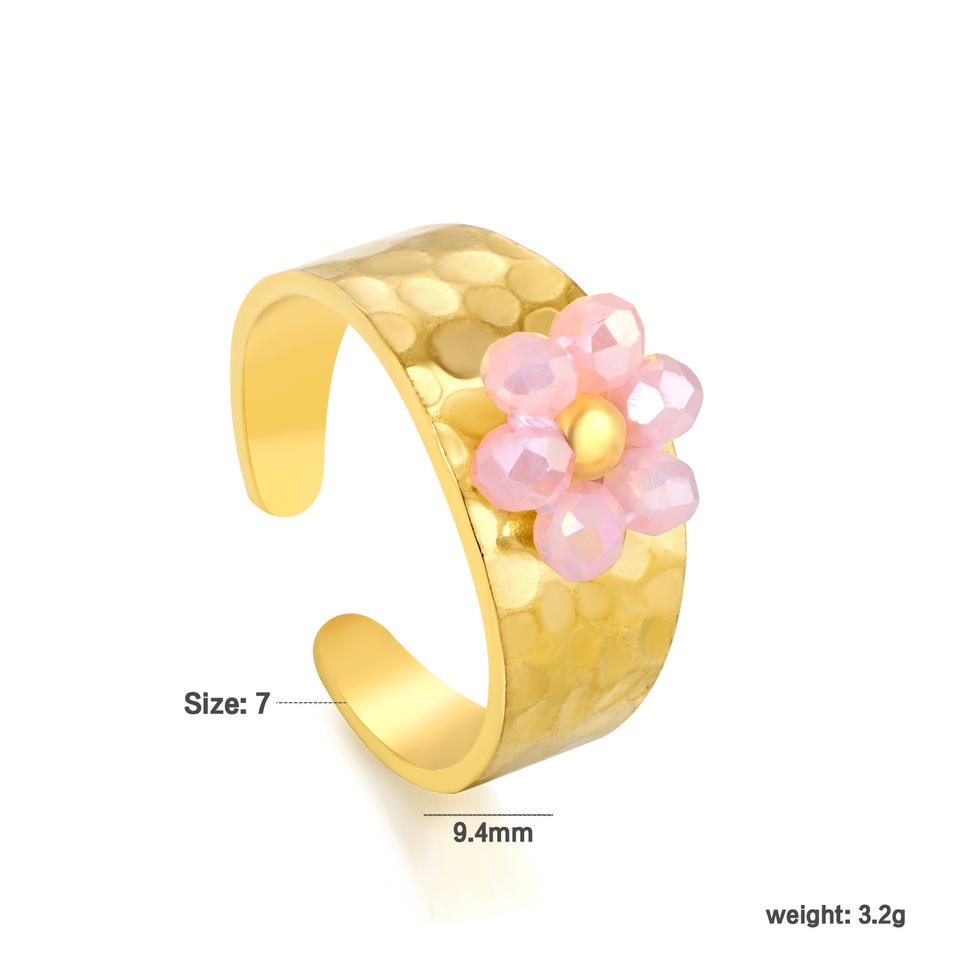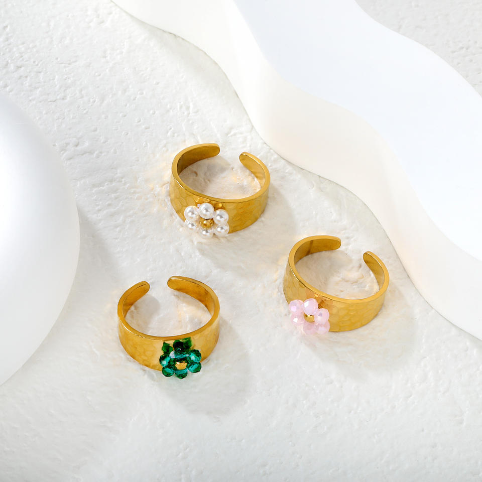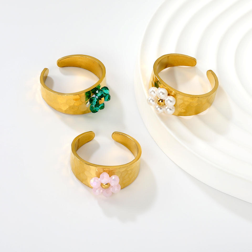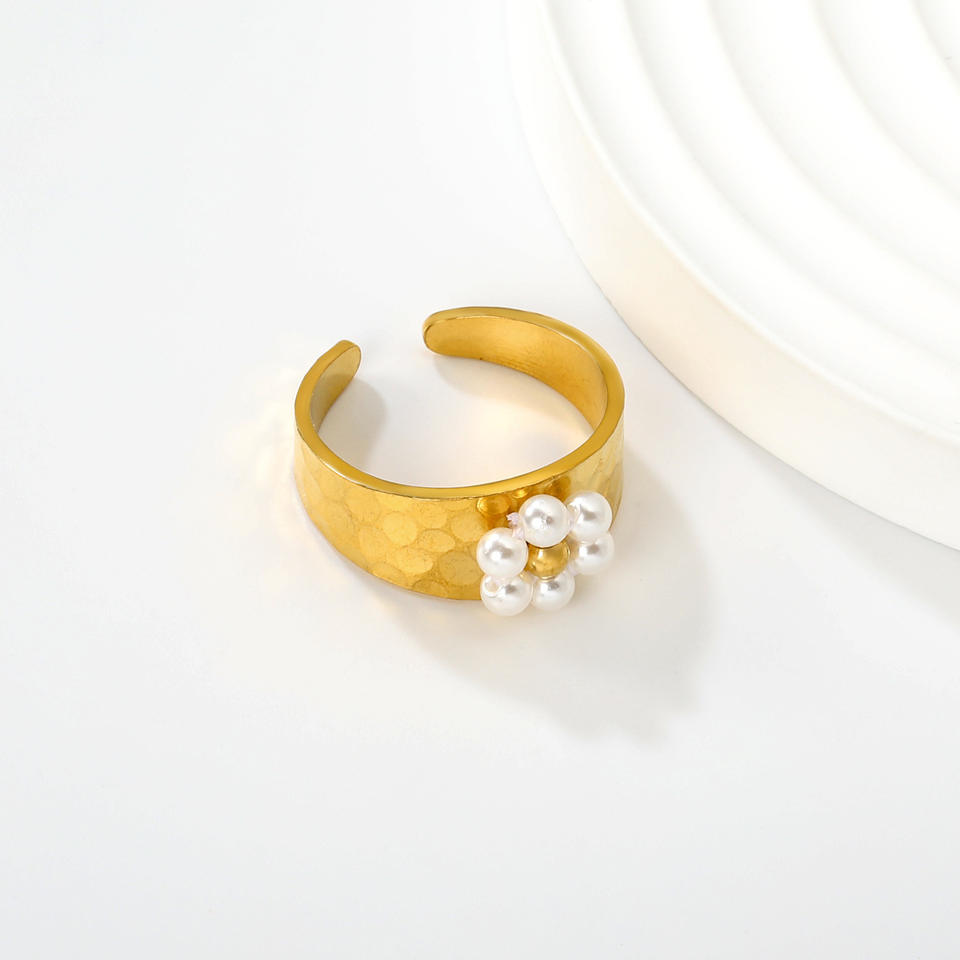 Fashion Rings Gold Flower Open Ring Pearl Inlay Unisex Jewelry Gift