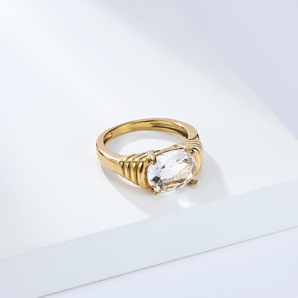 แหวนแฟชั่น ชุบทอง ประดับพลอยรูปไข่ ทรงกรงเล็บ เครื่องประดับสำหรับทุกเพศทุกวัย ของขวัญ สีขาว สีดำ สีแดง สีเขียว เพชร