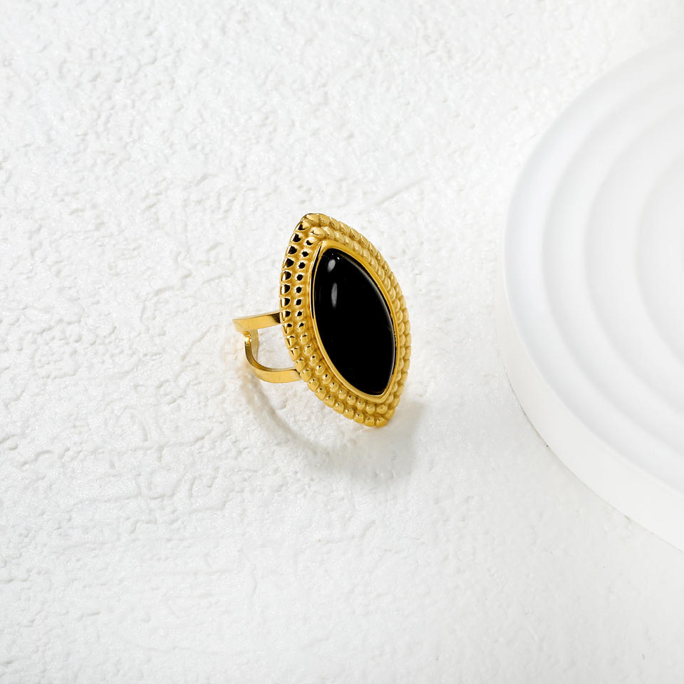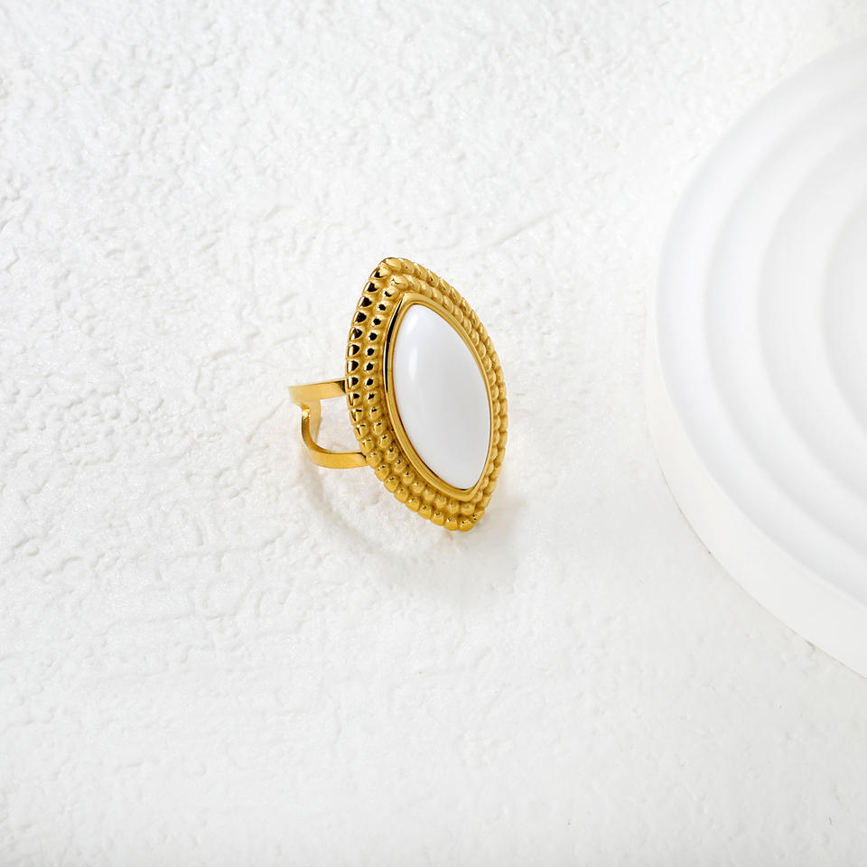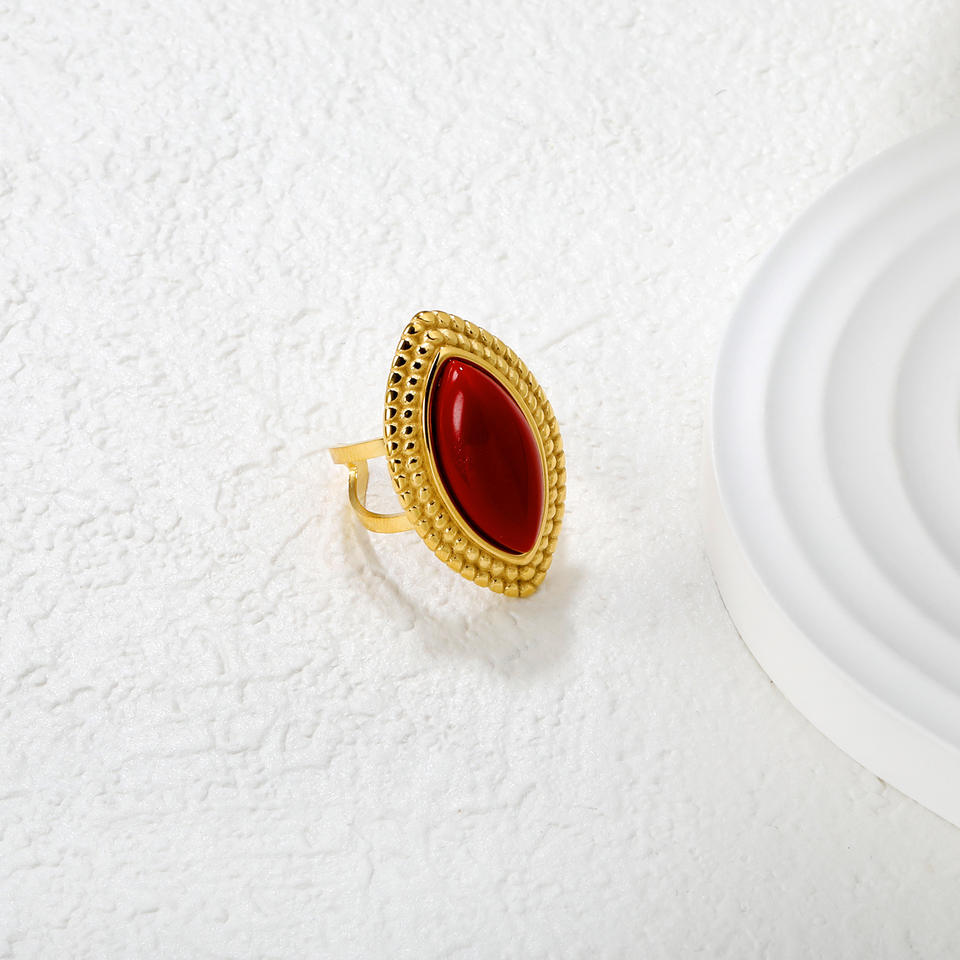 แหวนแฟชั่นทรงมาร์คีส์ ชุบทอง 18k ประดับอาเกต เครื่องประดับสำหรับงานปาร์ตี้ของผู้หญิง