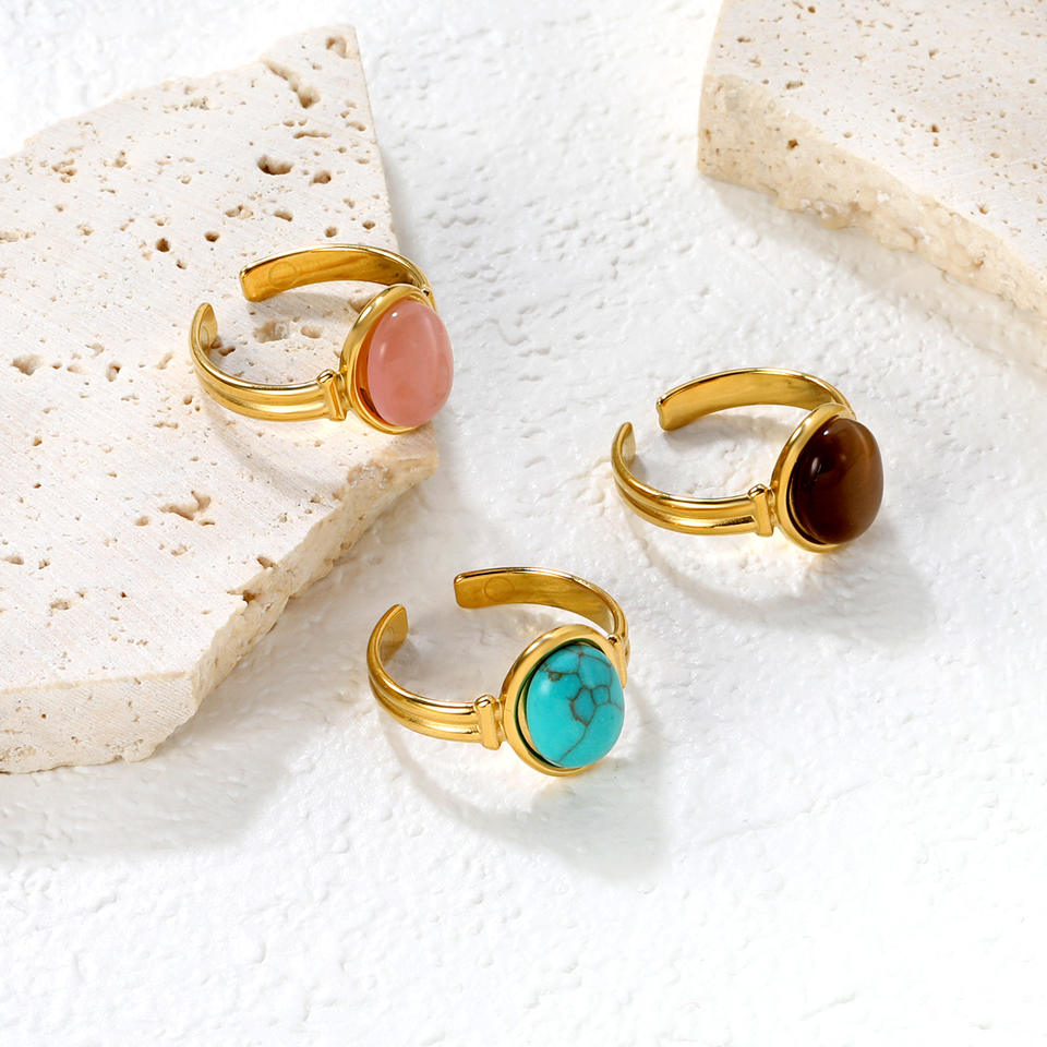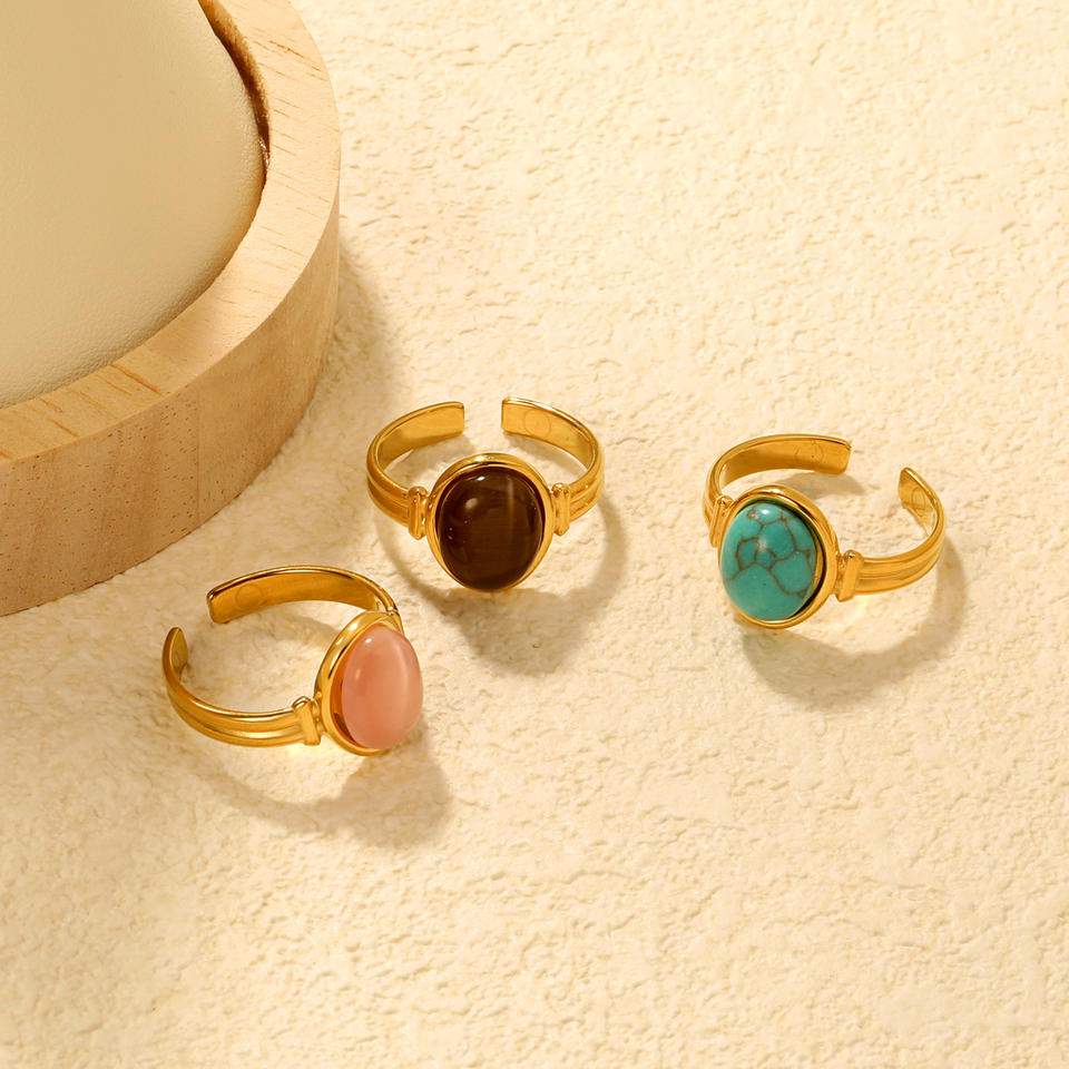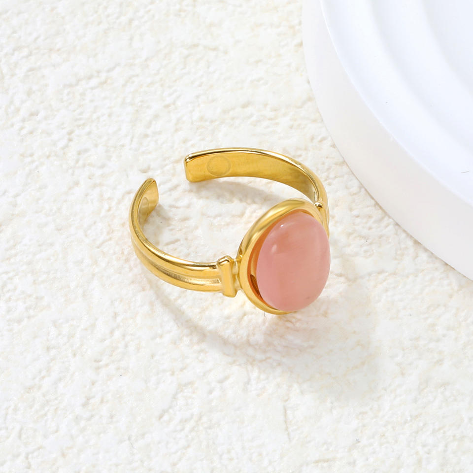 แหวนแฟชั่นรูปวงรี แหวนเปิดลายตาแมวสำหรับผู้หญิง เครื่องประดับแบบฝังขอบ ของขวัญ
